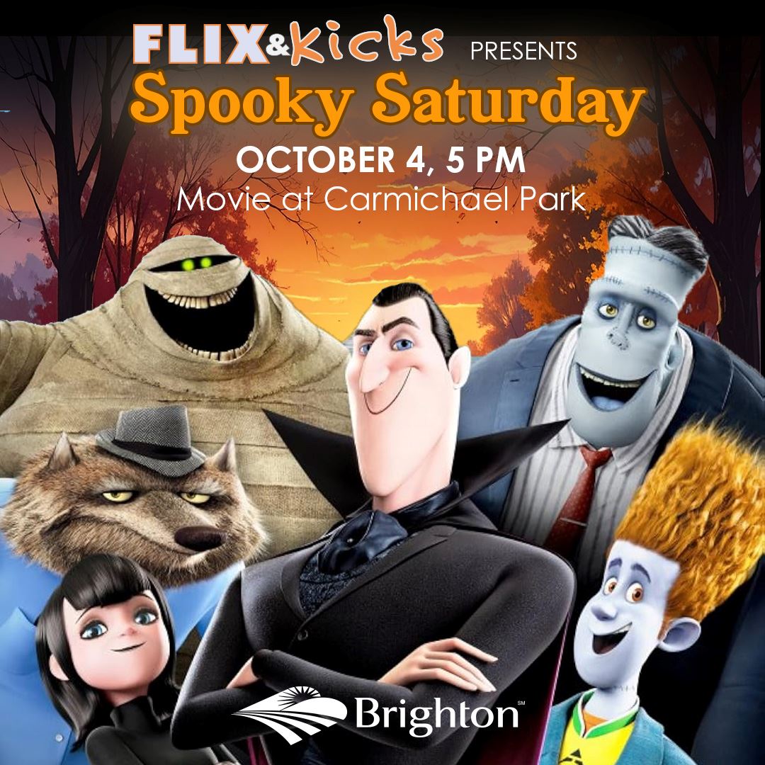 The City of Brighton is thrilled to present a special fall edition of our Flix & Kicks series — Spooky Saturday! Join us on Saturday, Oct. 4, at 5 p.m. at Carmichael Park (650 E. Southern Street) for an evening of family-friendly fun featuring the animated film Hotel Transylvania (PG, 2012).